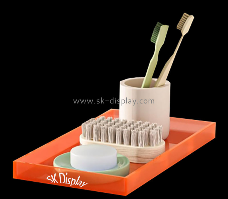Wholesale custom translucent orange acrylic dresser tops trays are available from SK Display. These trays are made from high-quality translucent orange acrylic material and feature a sleek design that adds a touch of modern sophistication to any dresser top. The translucent orange color provides a soft, warm glow, making them perfect for organizing jewelry, perfume, and makeup. They are versatile and resilient, suitable for bathrooms, vanities, or as decorative pieces in living spaces. Customization options include size, shape, and color, ensuring that each tray meets specific needs and aesthetic preferences.